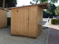 Es ist möglich für die Dauer der Ausstellung eine Holzbude (siehe Fotos) anzumieten.