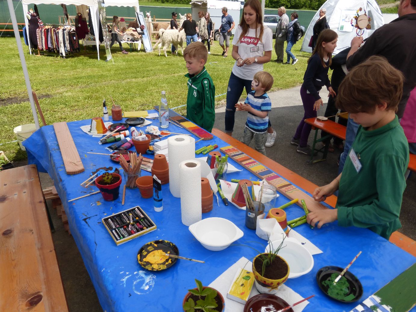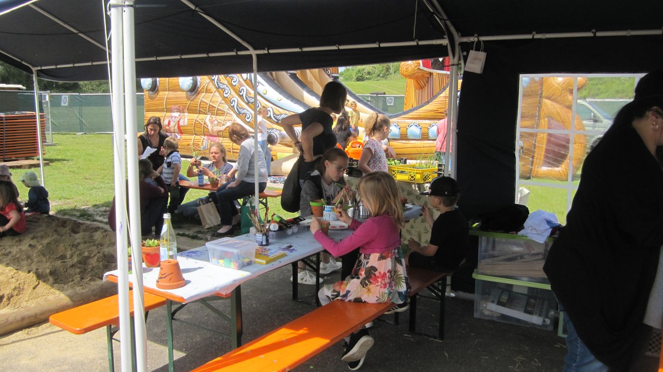 mit Buddeln, Hüfen, Basteln, Malen, Topfen, Schminken...